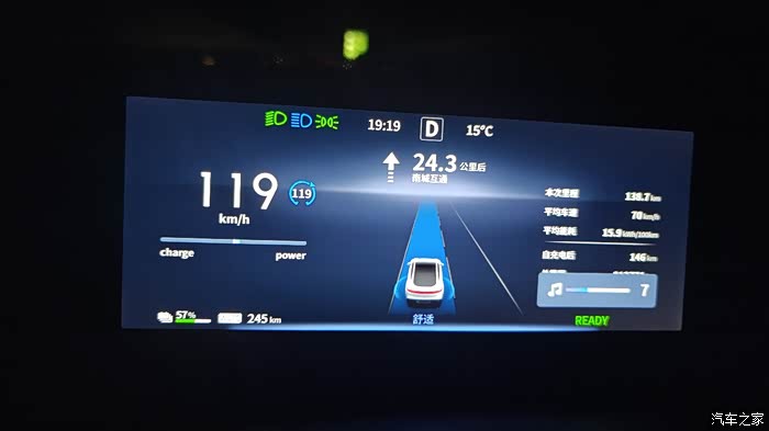 而在高速方面,我一般开115-120时速之间,这个大概能跑350左右,在高速续航大部分在百公里15-16之间电耗这一点我觉得还可以,因为出