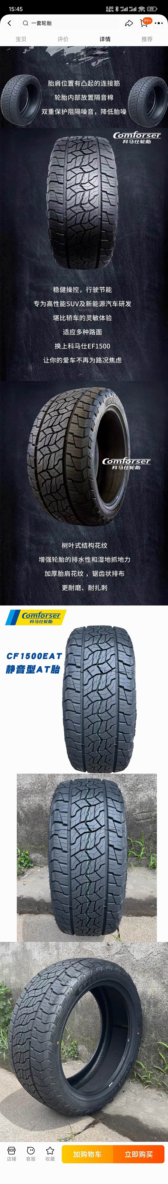全新款科马仕EF1500舒适静音型EAT全地形越野轮胎,为新能源车设计,所以单胎承重850公斤,比悍版原厂胎还多100公斤。兄弟们终于不用换小轮毂上AT胎了。