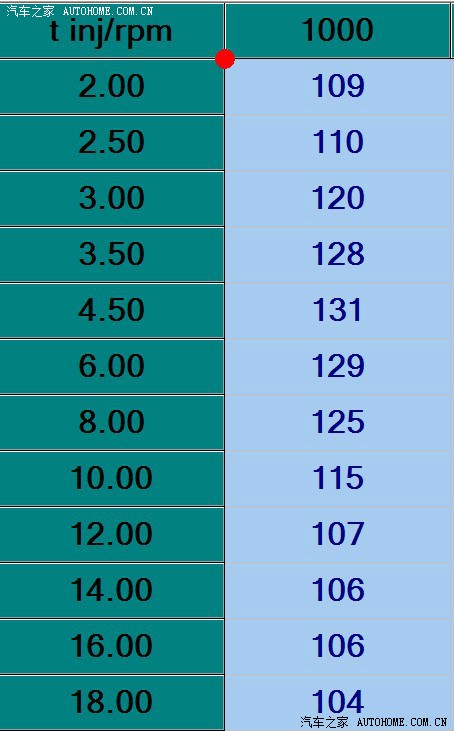 1000转这一列调后,调2000转这一列。就是燃油状态下,踩油门让转速在2000转保持尽量稳定,看喷油时间,然后切到气,调MAP。方法和1000转一样。一致调到5000转。估计手动档5000转也够了。自动档我自己的车只调到3000转,自己一个人踩油门到3000转舍不得发动机,原地调的。最好2000转以上车行驶状态调最好。
