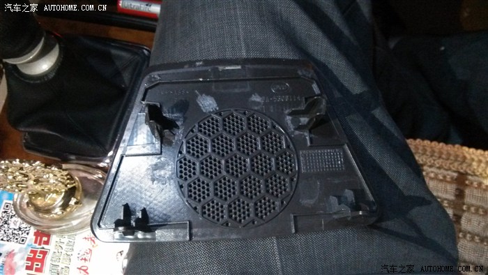拆下原车喇叭,拆车过程就不重述了,坛子里有,我也是学的他们的,的确太紧了,需要注意的是,拆的过程不要着急赶时间,用工具顶住,让它有一个变形的适应时间,最后一点一点加力,就下来了,因为G6的中控台虽然是硬塑料,但这种材质比较特殊,类似比橡皮擦硬10倍的东西,不是我们见到的电视机外壳那种塑料,实际上是有一定软性与弹性的,也不割手,用刀子很好切割。估计是为了在非常时刻降低对人的伤害吧。