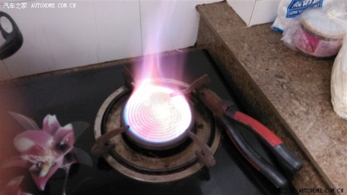 准备上车安装了,我使用的原车接线头,坑爹的是,电烙铁被女儿当玩具搞坏了。没办法,土法也要上马啊,找了一截铜棒,入在灶上烧红吧。成功把线换了过来,当然得有焊锡之类的工具材料。