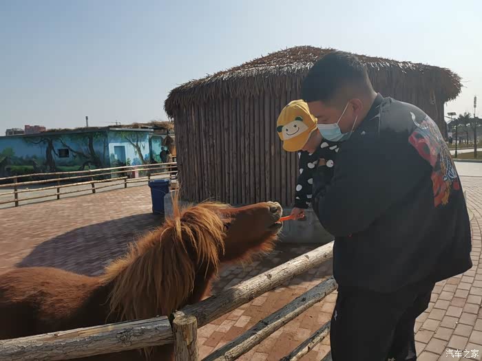 动物园接触下小动物。矮马吃胡萝卜
