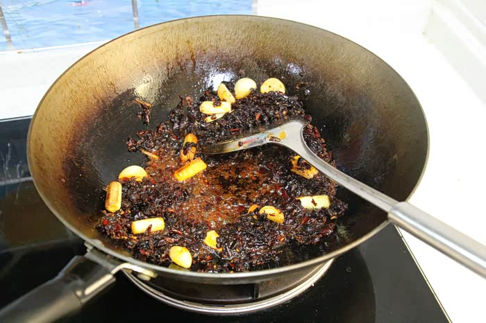 放入葱姜蒜炒出香味