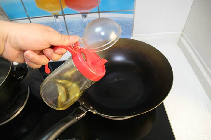 铁锅上灶,开火,放适量食用油