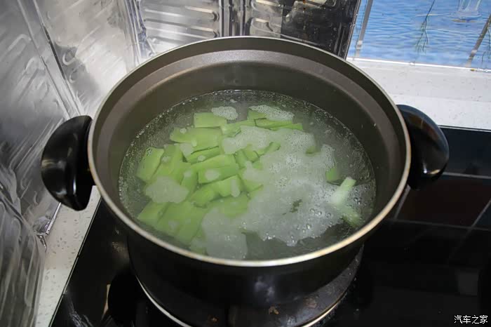 水开后焯菜,青笋