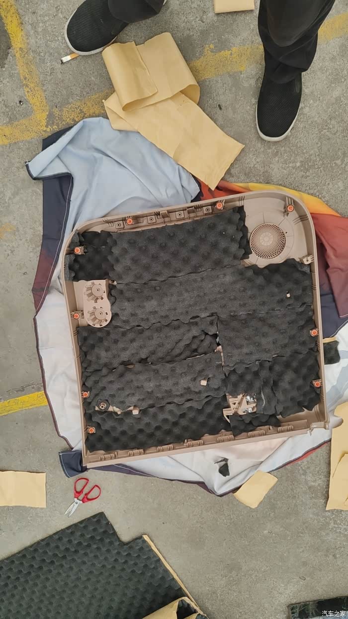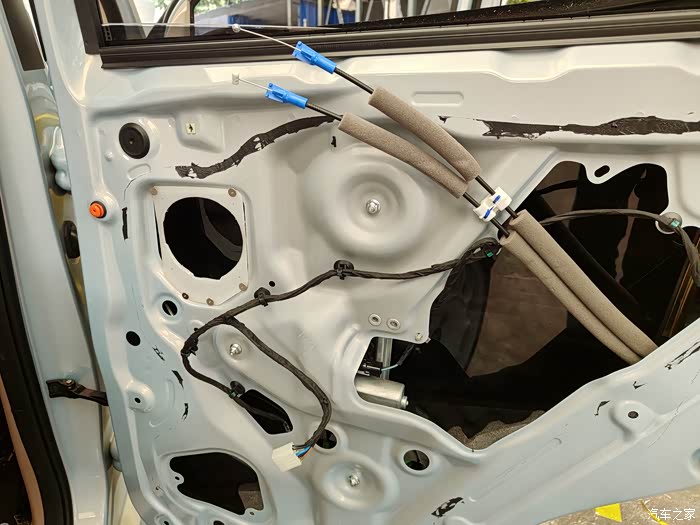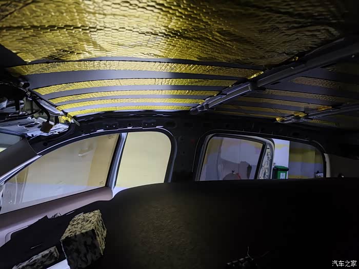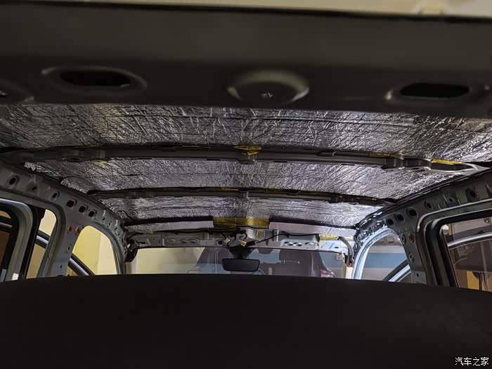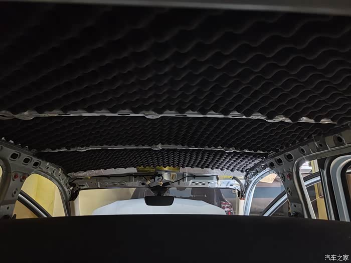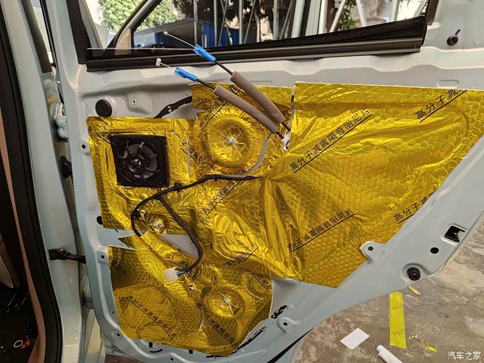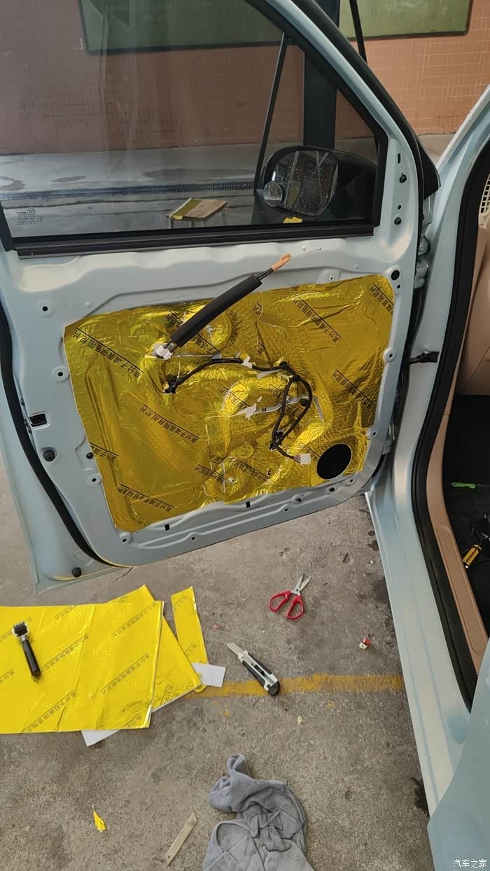 五菱迷你四门版全车隔音,加装后门喇叭作业。地下车库操作,图片效果比较暗。