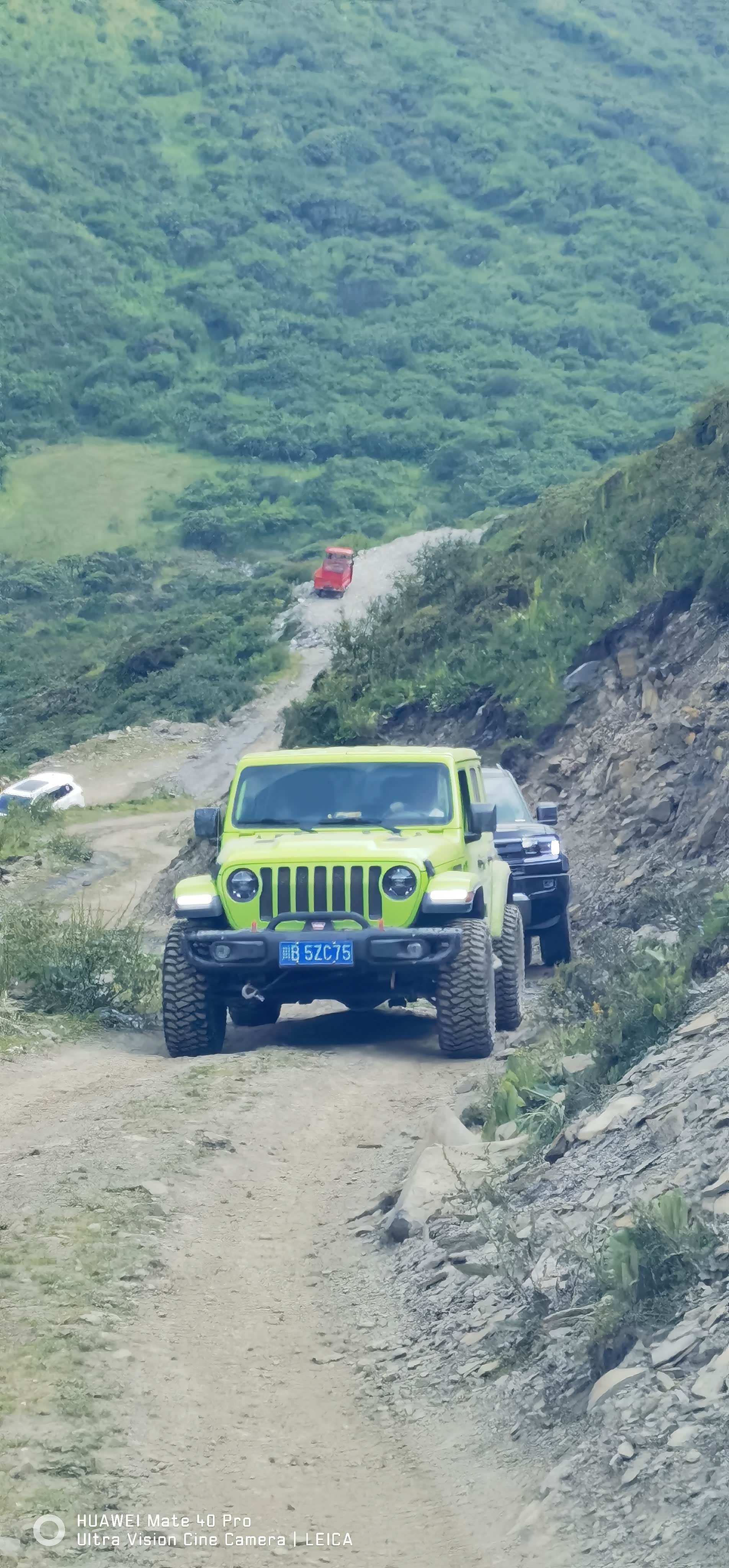 米孟线水冲路乱石头多,坦克也可能磕底盘,有一处用四驱还上不去,用低四加锁就很轻松,距离垭口一公里还爆胎一只,侧壁破三公分,用胶条勉强塞住,打气一个压多一点,还好支撑到上垭口,又坚持到下山,又开了一百多公里到小金县,因为天气热了,胶条的胶融化,脱落了,不得不补轮胎,师傅技术不错,侧壁也能补,80块搞定,不想在高海拔换胎,太累了。