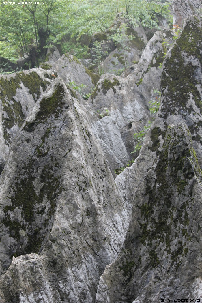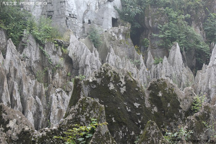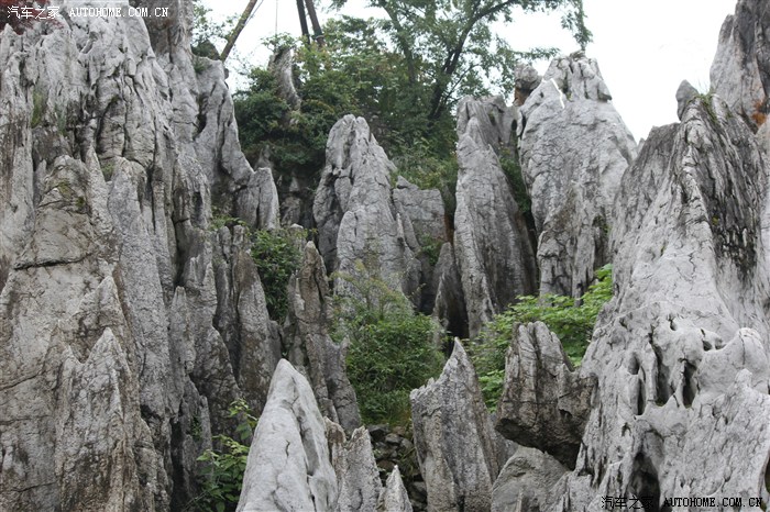 一片片的石林傲立于地,犬牙交错着,绿树从石缝中蹦出,令人叹为观止。