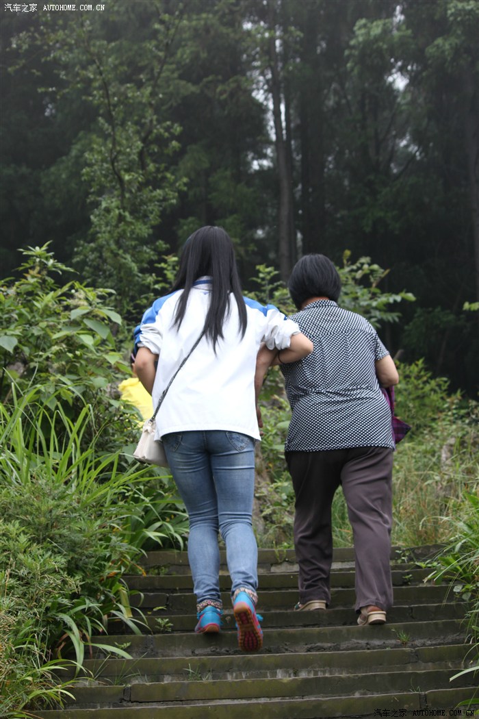 我老妈的脚已经有点扭伤了,一路都要大女搀扶着。