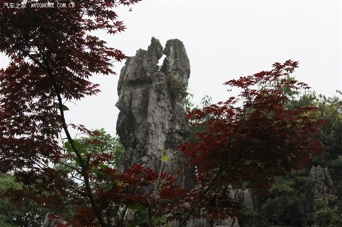 石林,杉树,形成了鲜明的对比。