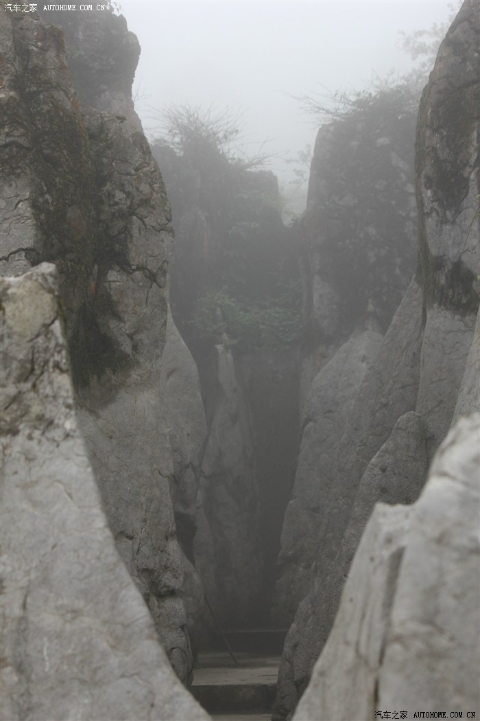 事实证明,我们的决定是正确的。6月21日的早上下了一点细雨,等我们到达目的地后,一直到傍晚,老天爷都为我们开了一次绿灯。只不过在华蓥山上,有很多“团雾”,最大的时候能见度不足10米,再加上一整天都是阴沉沉的,所以拍出来的照片基本上都是灰蒙蒙的,而且本猪脚比较喜欢自然真实的景色,所有的照片都没经过后期处理的,各位盆友就将就点看吧。