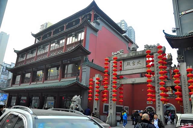 火宫殿一派节日气氛,一长串火红的灯笼煞是好看。