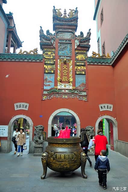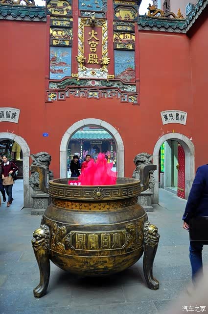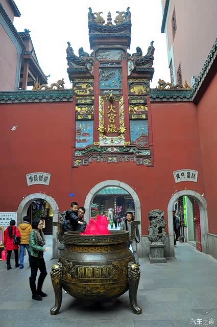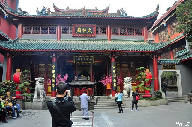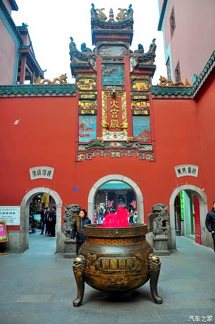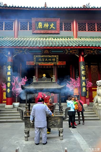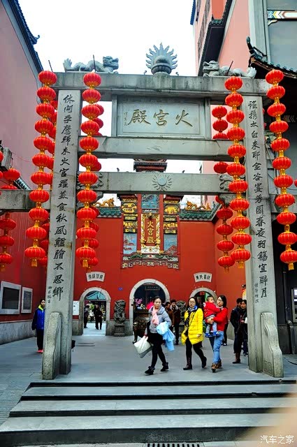 进入火宫殿,迎面而来的就是火神庙。庙里贡奉的火神不知是不是被楚人尊为先祖的祝融,如果是他,这倒是个祖先崇拜的好例子。只是这样一来,门上那副“佛佑火宫殿”的牌匾就不大好解释了,因为祝融的时代可是远远早于佛教传入的时代啊。而且一个是土生土长的楚人远祖,一个是发源于印度的泊来品,让佛来保佑火神,似乎有点驴唇不对马嘴。所以这位火神究竟是何方神圣,还需达人赐教。