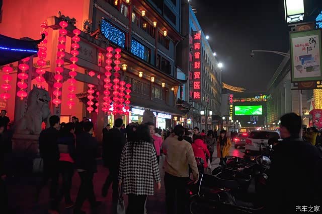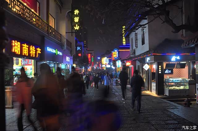 我们从火宫殿走到了步行街,步行街车马喧嚣,上了人行道大桥上,马路上是人山人海,拥挤得水泄不通,车水马龙,热闹非凡。摆放好三角架,拍摄了十多张步行街的的夜景。