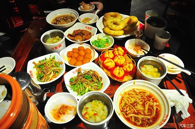 这就是我们点的小吃,各色各样的一大桌子,吃的肚子受不了啊!根本吃不消!