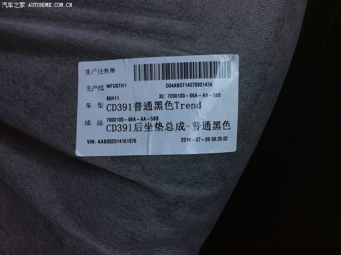 坐椅套上的生产日期, 7月份当月的车,不过已经没有了行车自动落锁了。