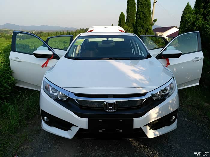 时间过的很快、离考驾照眨眼就快6年了!记得刚考完驾照、拿到手的时候超级激动!特想有辆车开。因此刚考完就买了2011款比亚迪F3手动挡。图的就是一个同价位空间大(五菱宏光顶着车顶修房顶漏水牌子斜着眼漂移而过)说实话,虽然很多黑比亚迪的,但我真心觉得这车还不错!很耐操!就是动力和隔音差,特别是满载时超车都难!一个人开1挡现在油门大点都响胎。新手到现在开了快6年了、没掉过链子!在此感谢F3陪伴我的这些年、因为开车比较随性因此这车换车考虑的首先是动力,然后才是外观和空间什么的!一直在犹豫选什么车,入眼的有CX-4、新逍客、博瑞、阿特兹丐版(为什么是丐版?因为没钱)直到新思域出来,眼前一亮!这就是我要的车啊!看国外测试加速杠杠的、油耗杠杠的、安全测试5星杠杠的!因此在3月25号车还没上市就去四儿子那交了意向金!然后就进入了等车的煎熬日子了。4月12公布了价格、说实话和我心里价位差不多!更低了一些,毕竟1.5T 177马力百公里加速7点几的车了!一直等到4月23号、四儿子才通知我车子已经从厂家发出了、叫我过去办贷款手续!一问23000多的利息加手续还得提前三天去办理、隔着几百里路呢!一咬牙说我全款了。谁曾想下午那边打电话过来说要加价!!!我草(当时一千匹**从头顶直接飞往四儿子店去了)当时我听了就火了,我提前一个月订的车!你给我谈加价?当时我就说了除非这世界没有车卖了,速腾1.4T优惠2.6万了都、你还给我谈加价!(在此感谢速腾君)直接和她说加价车爷不要了、你钱退给我!看我态度比较火,那边说看我提前那么久订车、十足的本田粉!她去请教一下经理!半小时后打电话来说车可以给不过得店里买保险、合计得8500左右!当时(又一千匹**飞了过去)唉!谁叫咱稀罕这车呢、买就买了吧!总算没加价!保险也是保的咱不是。25号早早的带着老婆屁颠屁颠的坐客车去提车去了!当时太激动照片都没拍!!!不说了,口都干了!!!下面有请大白上场!(掌声在哪里)
