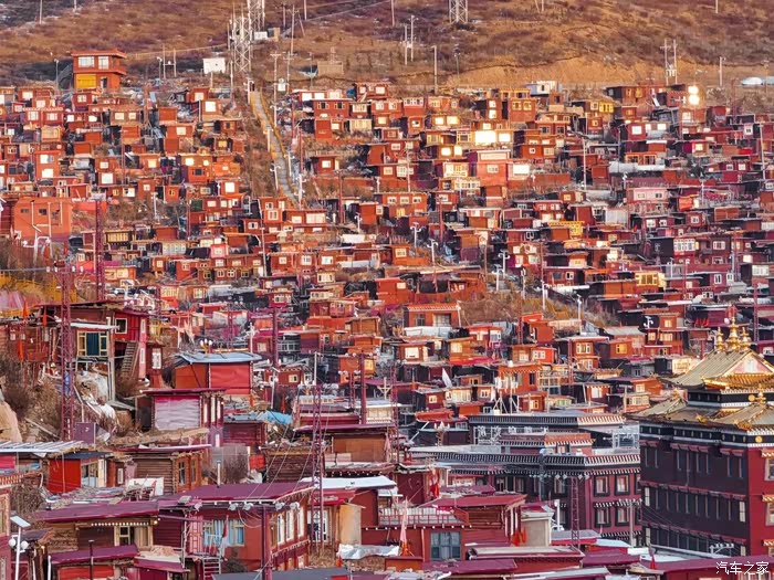 房间窗外的一片红色房子让我震撼,而夜幕降临那灯火阑珊的不夜色达,更使我耀眼,想去探索一下。晚上机缘巧合跟着丫头一起听了索达吉堪布讲经,上上下下全是阶梯,红色的房子不是建在平地而是在山坡上,回到宾馆餐厅已经关了,虽然母女俩只能买个泡面当晚餐,也是值得。既来之则安之(有房车在就好了,饿不着)
