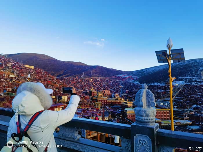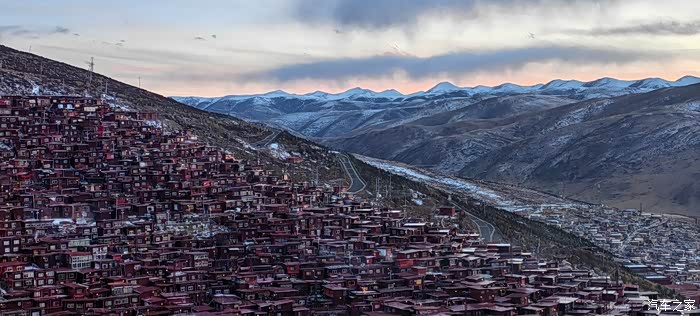 其实这次川西之行我就想去色达,又因群里大咖的建议,我的车不行,放弃了去色达。再次决定去,是因美女车友提早一天到达色达探路,告知我们路很好走,天冷但没下雪。色达谜一样的存在终于可以拉开帷幕。感谢美女车友T的坚持,让我们母女和车友K带着父母两台房车在她到达色达后的继续向西。夕阳西下我们和村支书母子告别,奔赴色达。