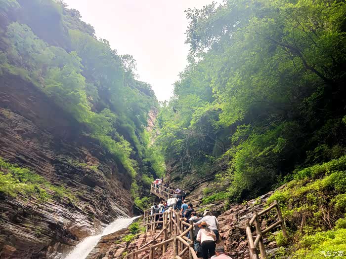 今年雨水多,近期太行山又连续降雨,所以大峡谷中时而泉水叮咚,时而急流若奔,时而泉瀑飞泻……行走在峡谷中,雨雾霏霏,清风习习,十分惬意。沿着峡谷一路上行,越溪过涧,涉水穿瀑,在时而咆哮、时而轻吟的飞瀑流湍声中,我们游赏着大自然的奇妙。