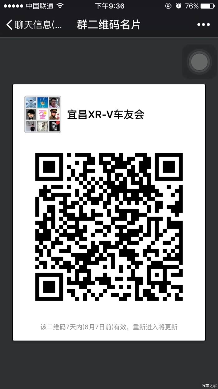 上了精选日报,也收到很多宜昌老乡的祝福,谢谢你们,同时为了大家找到组织,贴一张宜昌xrv车友会微信群的二维码,希望借助汽车之家这个平台,能让大家线上线下都能成为好朋友