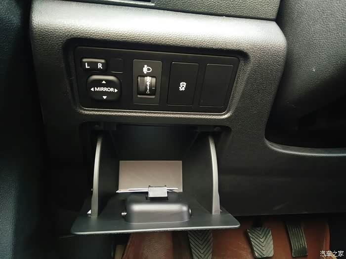 方向盘左下方的那个储物格叫什么来着,卡槽?放烟,打火机,驾驶证什么的刚刚好,很方便。