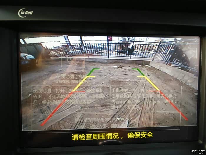 倒车影像还行,清晰度和角度都可以,只能说是大众水平,没有多么突出(比如画面特别清晰)也不会太差。好的一点是倒车时车里播放的音乐或者正在通话中的电话不会停止,只是比正常状态的声音小一点点,许多车在倒车时所有系统播放声音都停止了,这点算是个小亮点!