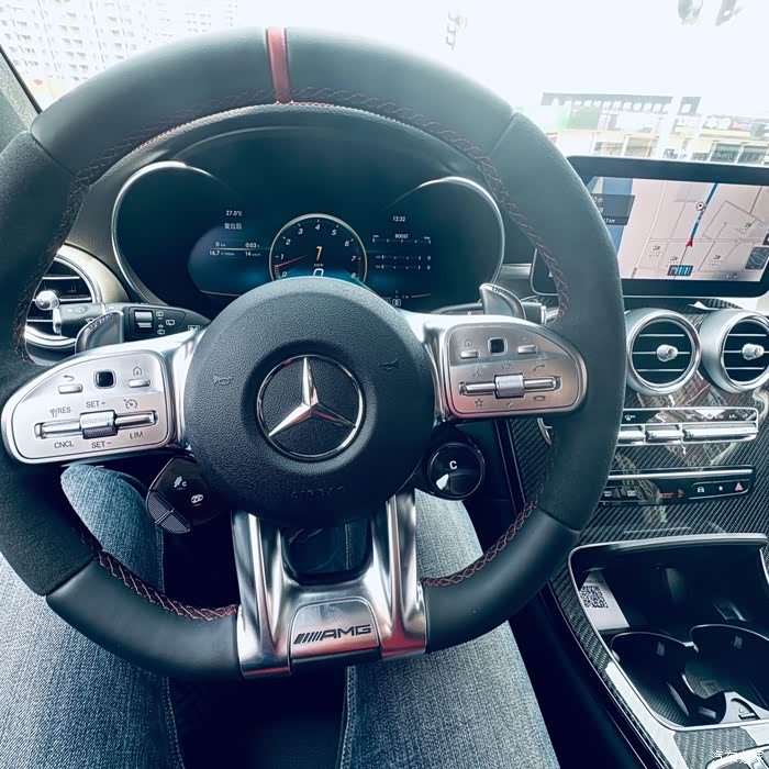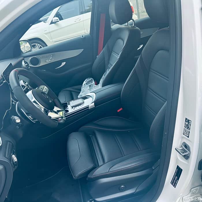 转眼满三年,到了GLC300出保前检查的日子。车子检查升级,我在外面陪销售喝咖啡看车。溜达到AMG展区,我趴在GLE53上流口水,问销售90卖不卖,卖就马上签合同,销售恨不得赶我出去……转头销售问我,43要不要,很便宜,马上回车,接着给我拉了配置单。原厂选配了DA2和DA5外加一脚踢,一查配置,原厂翻毛皮+纳帕皮方向盘带蛋蛋,碳纤维中控面板,全车真皮座椅,前排座椅带通风,后排座椅带加热,加上选配车价去到了72.2个万。这个选配真是太合我意,再加上销售给我了一个意想不到的落地价,我实在是没法拒绝,唯一的遗憾是没有柏林再就是个白色,销售也爽快,送了全车改色膜。