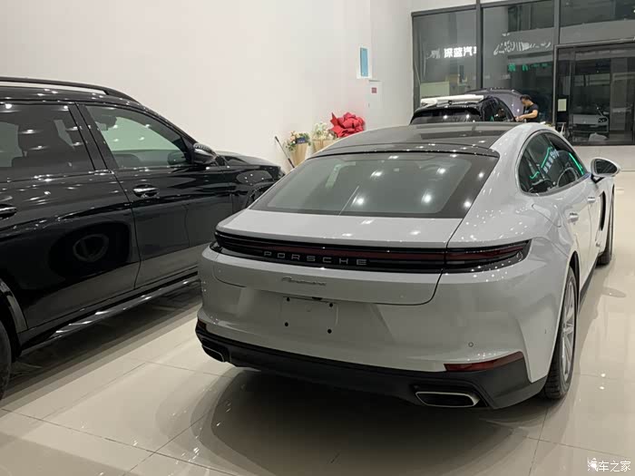 帕拉梅拉标轴版的外观设计充满了动感与优雅。从车头望去,标志性的保时捷家族前脸,搭配大尺寸的进气格栅,展现出强大的气场。矩阵式 LED 大灯组,犹如一双锐利的眼睛,不仅提供了出色的照明效果,还增添了车辆的科技感和辨识度。车身线条流畅自然,溜背式的造型设计,让整车看起来更加动感时尚。标轴版的车身长度恰到好处,既不会显得过于冗长,又能保持优雅的姿态,在城市街道中穿梭自如。车尾部分,贯穿式的尾灯设计简洁大方,点亮后效果极佳,双边共四出的排气布局,彰显出强大的动力性能。