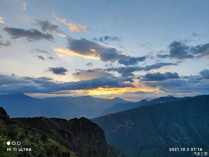 又到一年十一,很久没有自驾出游,一直都不觉得十一是自驾远行的好时光。但今年十一,按耐不住出行的心,带上儿子女儿,拿着我的小米11,开着跑了不到3000公里的星越L,选了个本地名气不大但风光十分壮阔的大峡谷,转了转。先来一幅风光旖旎的耶稣光下的大峡谷,蓝天白玉绿水青山,光影之间,气定神闲。大峡谷位于祖国西南,大凉山会东县,旁边就是著名的乌东德大电站,风光壮丽。MI 11 ULTRA 拍 吉利的 KX11(星越L)旗舰对旗舰MI 11 ULTRA 记录Geely K11运行轨迹,相得益彰MI 11 ULTRA国产旗舰,Geely K11(星越L,4驱旗舰)也是国产旗舰,旗舰拍旗舰,旗舰带旗舰。光影间,山川雄奇青山伴蓝天白云?,空气清新。