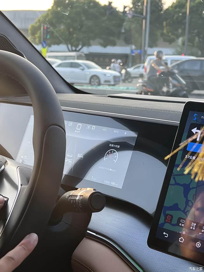 混动模式:在混动模式下,发动机介入后,虽然发动机的声音并不比之前油车大,但相较于纯电模式的静谧性,会显得较为嘈杂。同时,加速性能也会受到一定影响,没有纯电模式时那么迅猛。