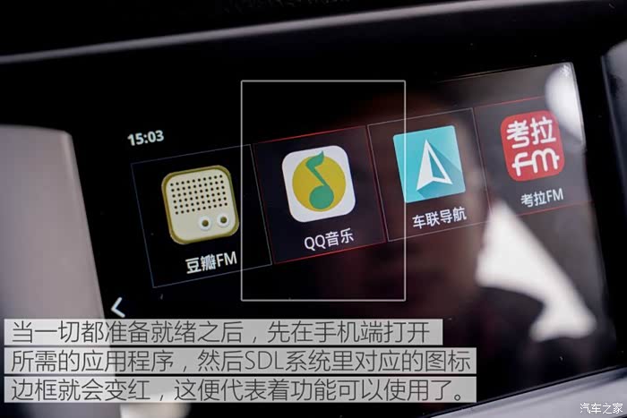 支持应用:QQ音乐、考拉FM、车联导航(需安卓4.3以上系统,并至少保持手机有2GB空间)。