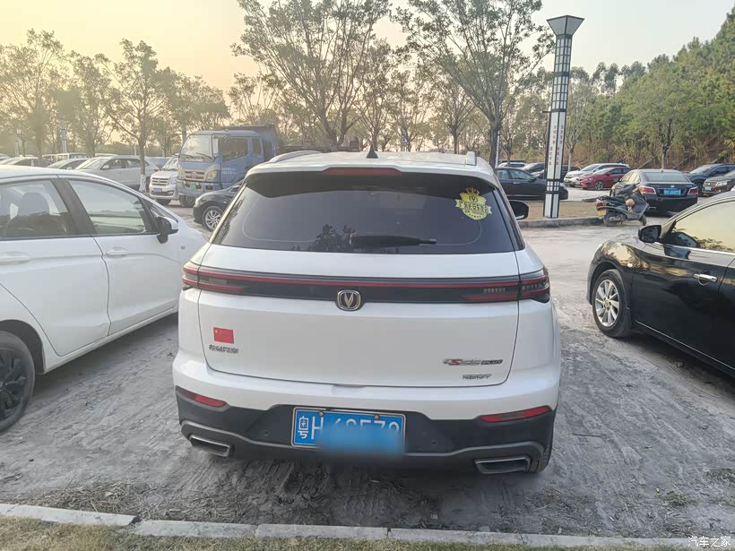 我的车是长安cs55plus2020款的自动炫色月光白,从提车到现在有5年5个月。属于紧凑型SUV尺寸长是4米5,宽是1米8,这样的尺寸属于中等,比35大一点,比75还小一点。当初看这台车从官方发布到第二年8月提车,在这中间我一直都在观察打听对比,最终还是选择了这款SUV,它是55系列最早的plus,但是也不属于第一代,55后来换了蓝鲸发动机才算是一代55plus。
