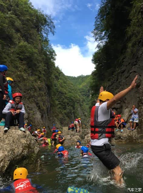 18日晨8时,车队集结前往40公里外的马拉河。9点30分,车队顺利到达马拉河,拉开了马拉河漂流之旅。素有“人间瑶池”之雅称的马拉河,坐落在美丽的湘西永顺境内,北倚老司城,南通猛洞河,东临芙蓉镇,西与灵溪镇相接,以其河道两岸绝壁陡峭,岩石嶙峋美丽,滩险壁绝,水质清澈、大小潭无数、瀑布十余条迭起、险滩二十余处而闻名。炎炎烈日下,马拉河是再适合不过的好去处了。车友们玩乐其间,集跳潭、游泳、徒步、溯溪、穿洞为一体,这种体验式的游玩,大家乐享其成,其乐无穷,纷纷感谢主办方的周至安排。