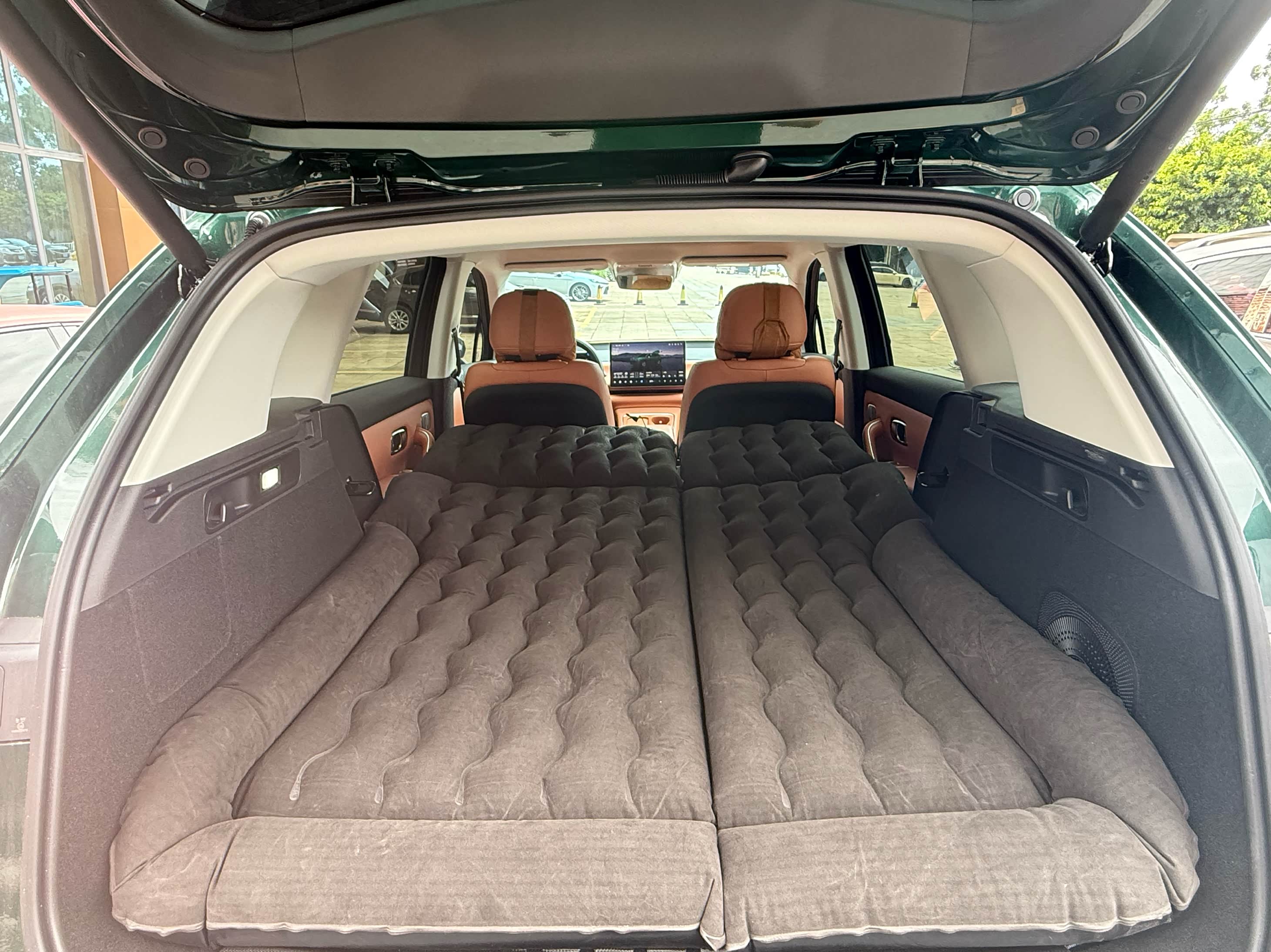 灵活储物设计:后备厢常规容积370L,后排座椅放倒后扩展至835L,轻松容纳儿童自行车+露营装备。车顶全景天幕配备物理遮阳帘,夏季隔热效果远超普通玻璃天幕。