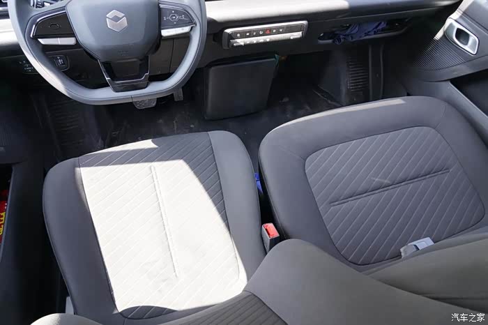 织布座椅很透气,坐垫和靠背填充都很厚,坐着支撑性很足,而且主副驾还自带了头枕,连续开几个小时腰不酸背不痛,舒适性很好。而且这个主副驾是连接在一起的,看起来就像一张小床,午休的时候直接躺下休息,比坐着午休舒服多了。