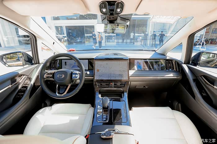 传祺E9的内饰属于方方正正,对称式比较端庄大气,副驾驶的屏幕科技感不错