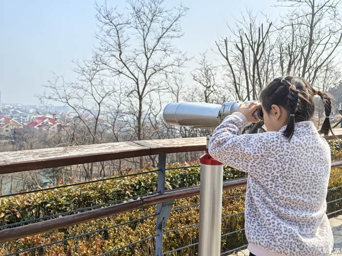 浮山横跨市南、市北、崂山三区,曾是一座被遗忘的荒山,如今却蜕变为青岛的“城市绿肺”。踏入宁德路入口,映入眼帘的是一条蜿蜒的木栈道,两侧草木葱茏,新抽的嫩芽在阳光下泛着微光。媳妇感慨道:“几年前上学的时候,这里还是土坎杂草,如今竟成了‘天然氧吧’!” 沿着平缓的环山绿道前行,远处湖光潋滟,近处鸟鸣啁啾。行至七观台时,雾气已散,向南望去,海天相接处隐约可见石老人的轮廓,女儿从望远镜里兴奋地指着云端大喊:“那是大海的项链!”