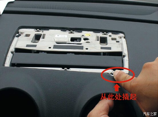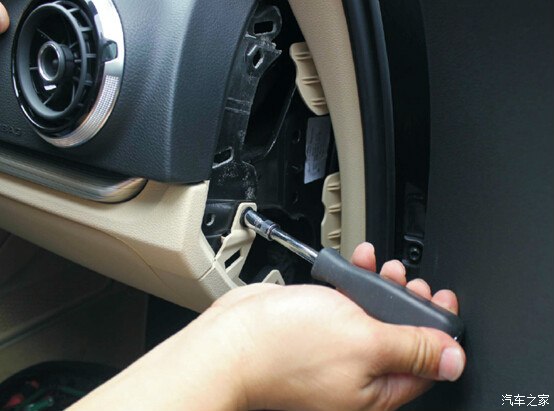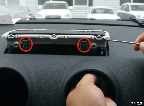 撬出后的,用螺丝刀将出风口内的两颗螺丝拧出(左右出风口各有一颗)