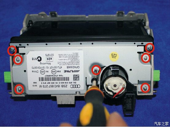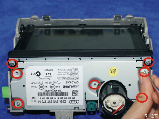 将原车银色后盖装回并用螺丝固定,加装屏幕完成后将原车配件复原