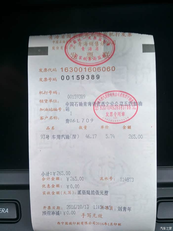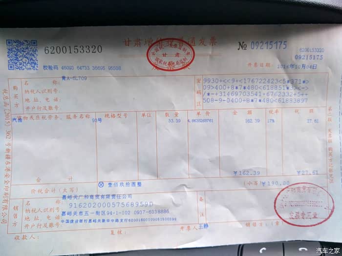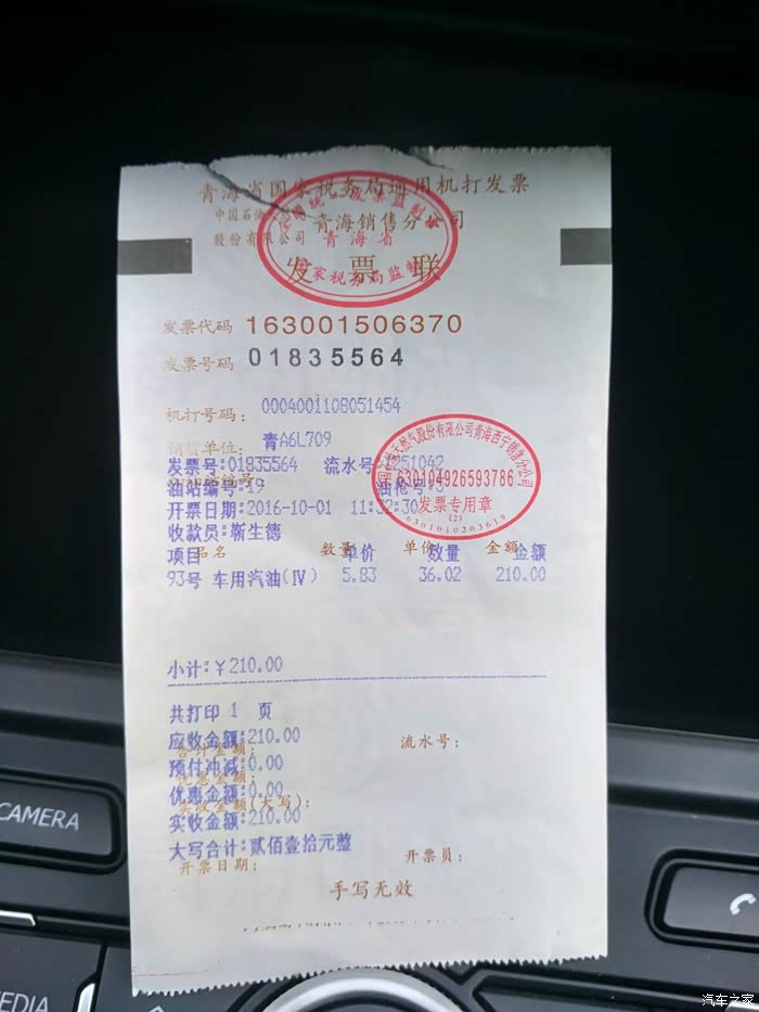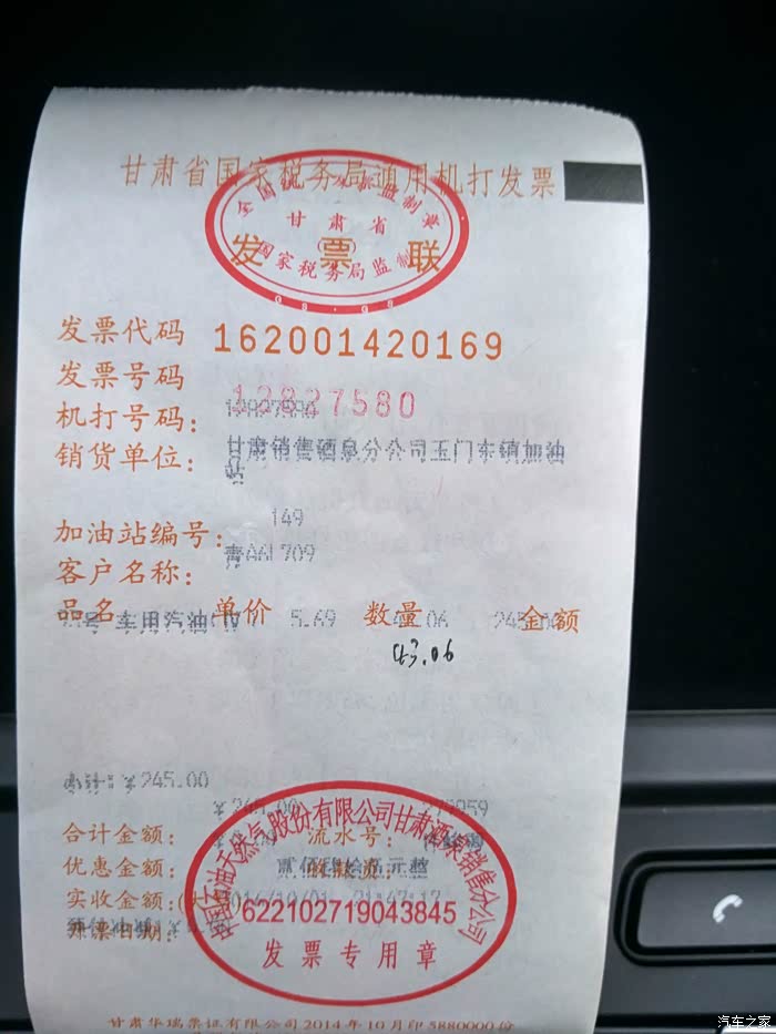 国庆节决定一家人去额济纳看胡杨,10月1日又一次翻越大板山,在青石嘴加油36.02升,210元。继续向前,过祁连县一路向西,过野牛沟,央隆乡翻越地图上划了禁止通行的二至大板,那条路太难走,一路上只遇到了3辆车,平均时速20几公里,路上只有车辙印,到处是水流冲刷的痕迹,坑坑洼洼,到处都是落石。从热水大板算起,我晚上翻阅了4次4000米以上的大板山。大约10点我们终于翻过了祁连山,到了玉门地界,在一个加油站加油43.06升,245元。晚上住在酒泉,第二天去额济纳,在额济纳加油27升,145元,由于加油站点错了加油量,开发票200元。额济纳住一晚上,三号返回,顺便去了东风航天城,晚上住酒泉。4号去嘉峪关方特让孩子玩了一天,在嘉峪关加油33.39升,190元。晚上6点从嘉峪关返回西宁,到青石嘴加油17.15升,100元。回到西宁用车不多,想算算油耗,直到10月13日加满油46.17升,265元,车辆显示历程27662公里。至此总行驶里程27662-24828=2834公里,加油合计36.02+43.06+27+33.39+17.15+46.17=202.79升。平均油耗7.1556升。