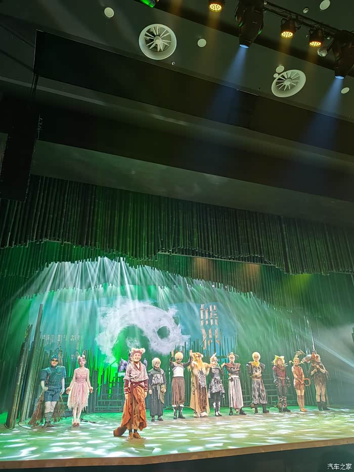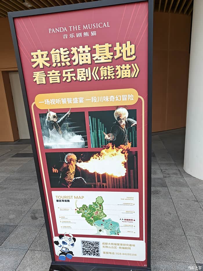 音乐剧演出地点在熊猫基地的二期熊猫剧场,把小狐狸停在基地西门停车场,从西门进熊猫基地值得一提的是凭《熊猫》演出票还可以免门票,走七八分钟就到了步行街,剧场就坐落在这里。《熊猫》是中国首部熊猫主题驻场音乐剧,由中国音乐剧教父李盾、著名导演周可等国内外艺术家联合创作,讲述了熊猫部落的五位勇士为了守护家园一起去龙之秘境冒险的故事。在台词设计上,更是结合了四川方言的特有韵味,川仔和母亲海椒面之间那一番对话,使用了四川方言更加风趣而充满感情。