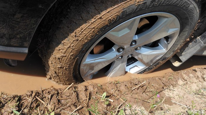 原厂的横滨轮胎,并不是一款越野胎,不过轻度越野还是可以对付的。如果是湿滑泥地,那就不行了。