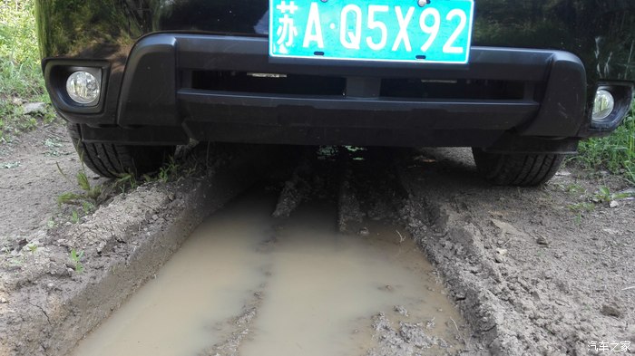 路遇长条状水坑,开进去,停住后再起步,顺利通过,这个路况是不是类似于单边轮?看森的日本测试视频,即使一侧轮子全部在冰面斜坡上,另一侧轮子抓地,森也是可以顺利起步的,所以这个水坑无压力。