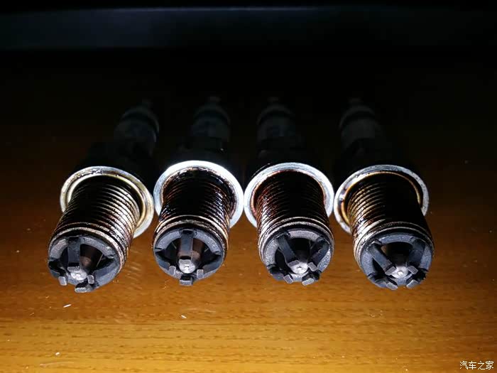 这是换下来的博世锐能四头铱金火花塞,送个车友现在已经在车友的车里继续服役了,这个延面点火的技术寿命也是非常非常的长的,我就跑了1w多公里完全看不出电极的损耗。四个电极间距有微小差别,每次点火都选择最佳路径,但我看陶瓷上四个电极都有点火痕迹。