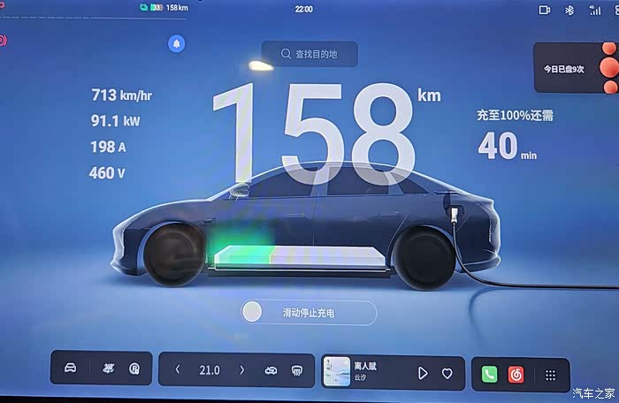 不管冬天夏天,建议跑个200多公里就去快充一次(不要300,300了就有点焦虑了,跑个200上个厕所歇个脚,一二十分钟合适),充到80%快充还是快,90KW基本上能跑满,大概就是20来分钟的事情。(今天没开空调的AC,就开了个通风,不想中途补电,回家家充便宜)。