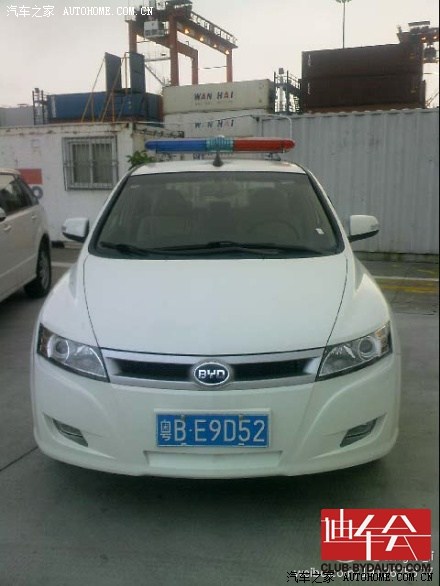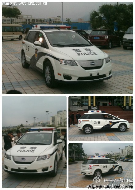 这车好啊,有关部们团购的我看到了what?最“纯”的警车!因为它是纯电动的。穿了马甲差点认不出来了,还好有车标——BYD。