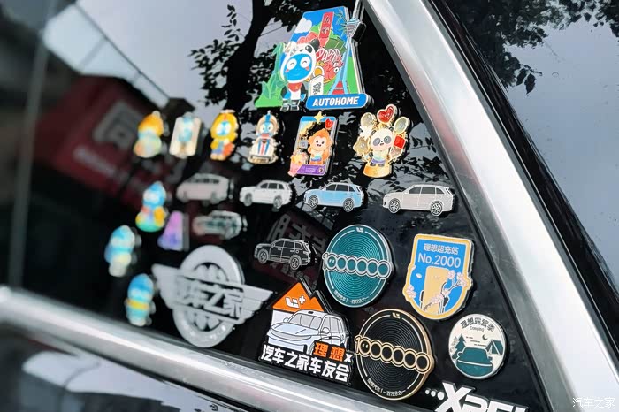 理想汽车的周边和理想商城的周边徽章,在我的三排角窗得以展示。