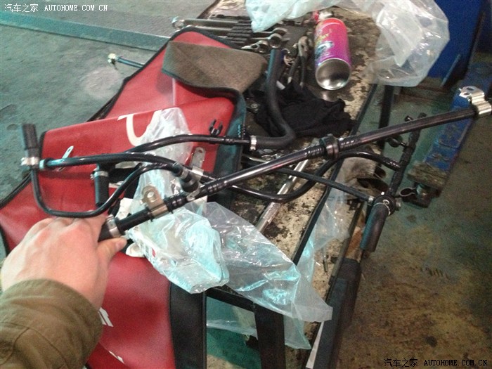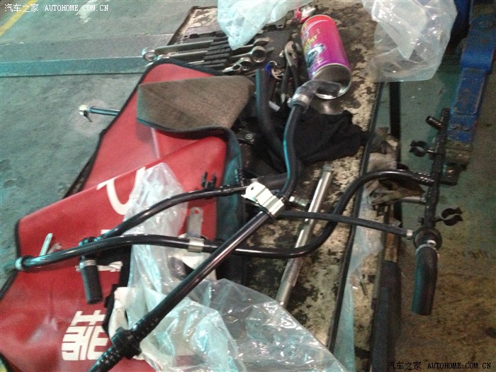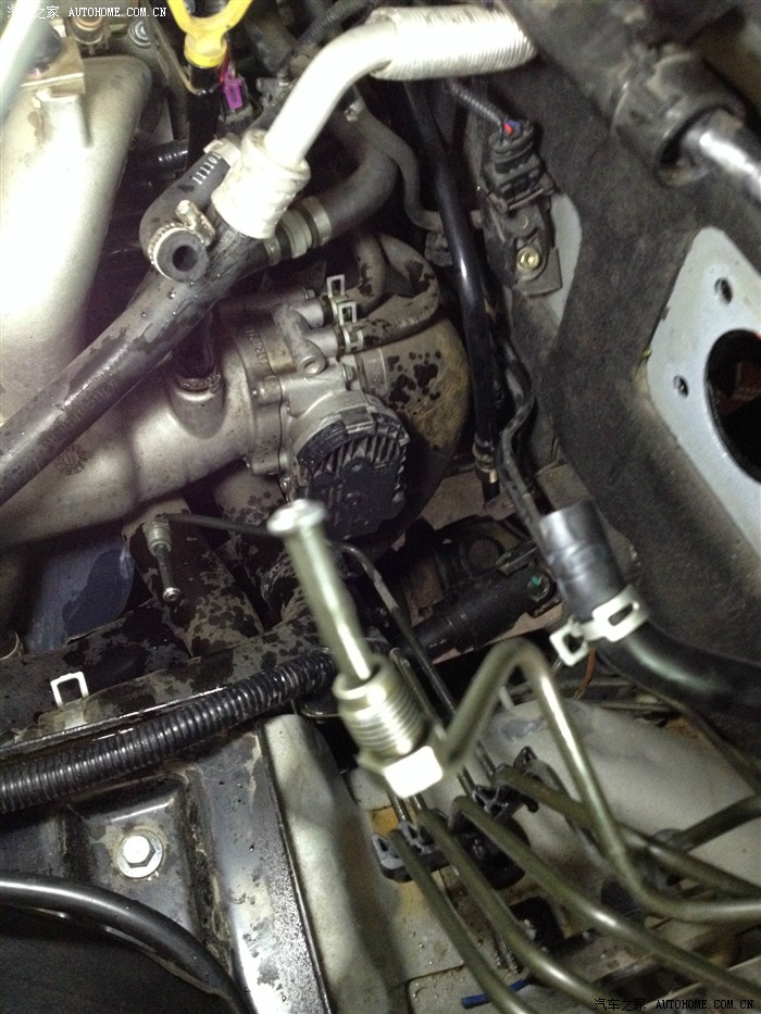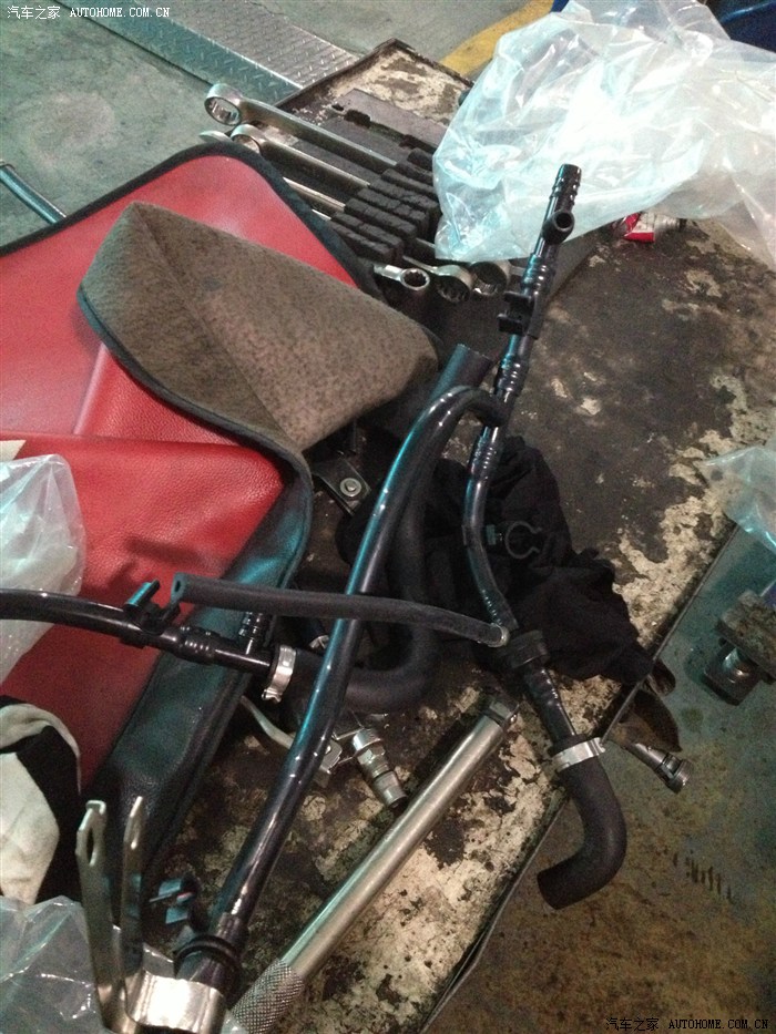 到4S先是查找涡轮管路和真空管路接头,师付们上看下看就是找不到有漏的地方,然后快下班了说找个空的时间把车扔这几天拆开来慢慢的找……