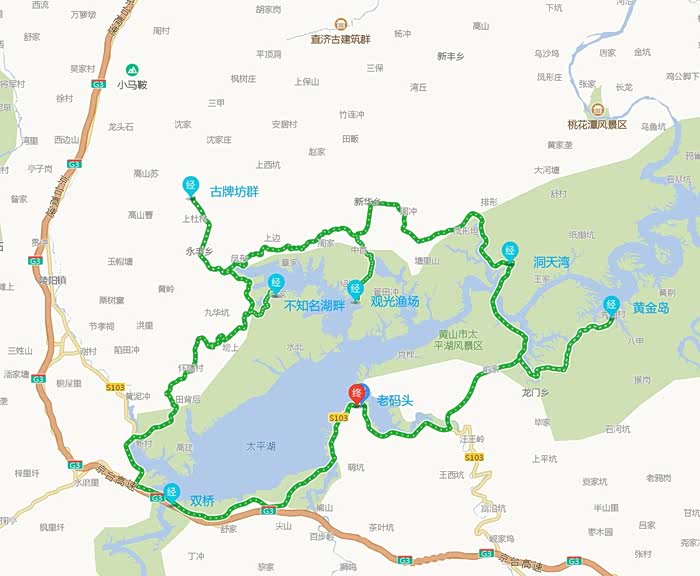 环湖的起点也是终点设定为太平湖老码头,老码头只是当地人的叫法,指的是南岸的太平湖镇。